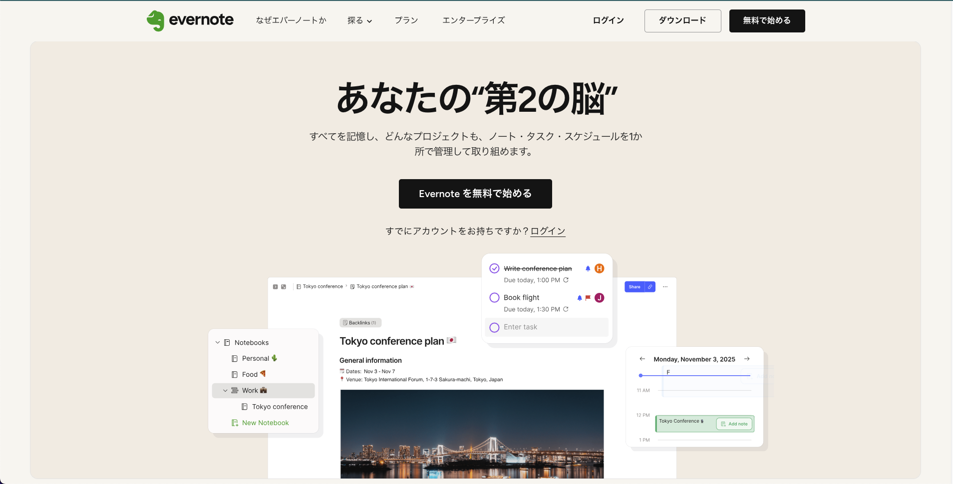 クラウド型 | 9,300円/年〜(無料プランあり) | Evernote Corporation |