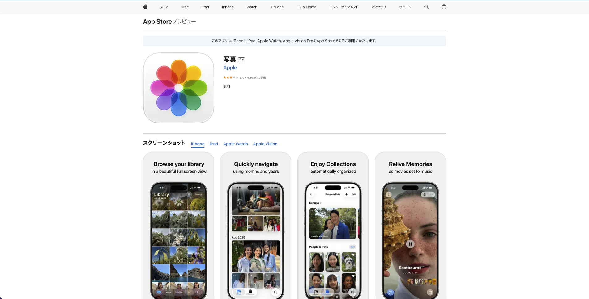 写真アプリは、iPhoneなどのAppleデバイスに標準搭載されているアプリです。基本的な機能は撮影した写真・動画の管理ですが、写真内のテキストの読み取りにも対応しています。設定から「テキスト認識表示」をONにし、読み取りたい写真右下のテキスト検出ボタンをタップすると、読み取ったテキストのコピー・検索・翻訳・共有などが可能です。
