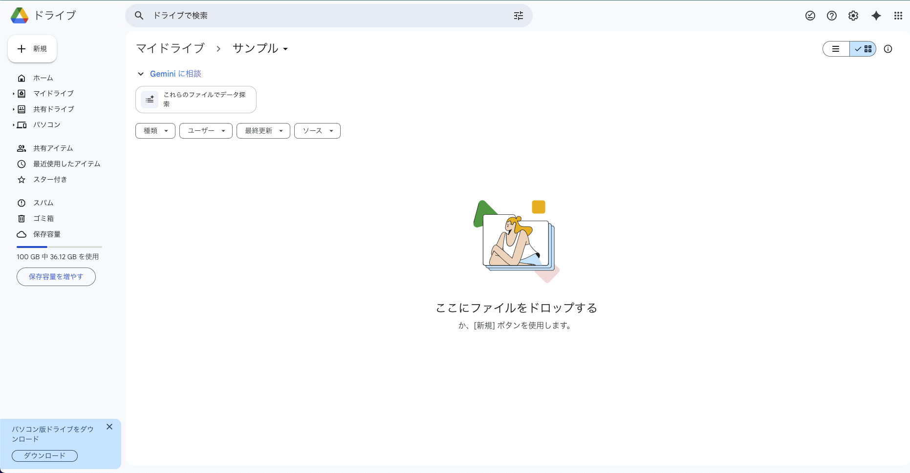 実際にGoogleドライブのOCR機能を使ってJPG画像をテキスト化する手順を紹介します。まず、Googleドライブにログインしましょう。