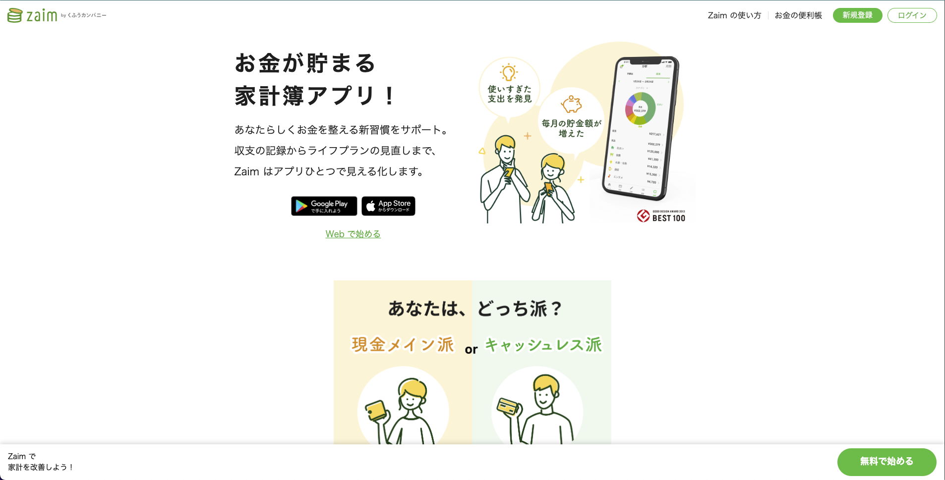 Zaimは、株式会社くふうカンパニーが提供する個人向け家計簿アプリです。レシートを撮影すれば記載内容を読み取ることができ、家計簿に反映できます。銀行口座やカードとの連携も可能です。無料プランもあるため、コストをかけたくない人にもおすすめできます。