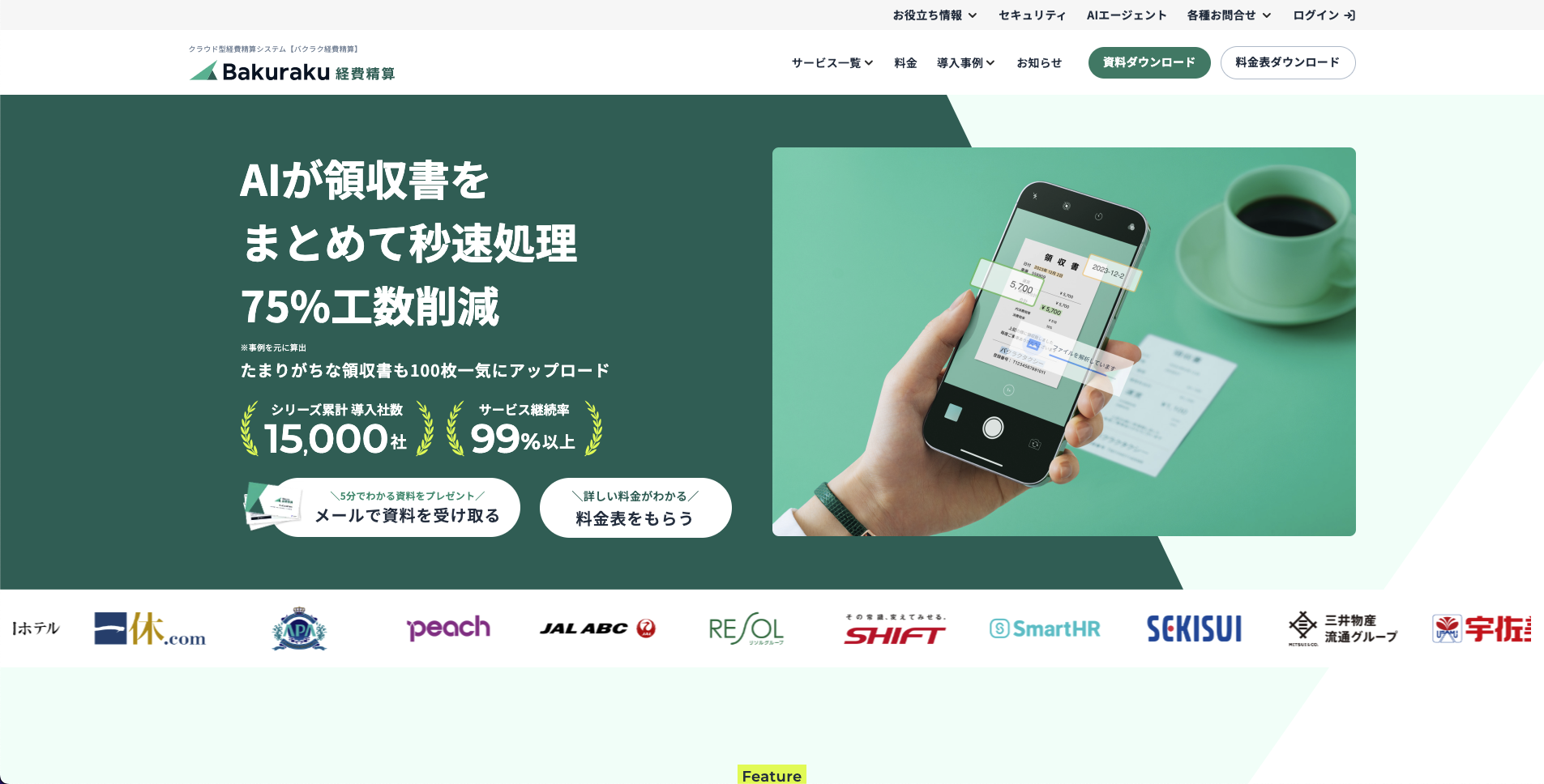 バクラク経費精算 スマホ撮影レシートを高性能AI OCRで読み取り