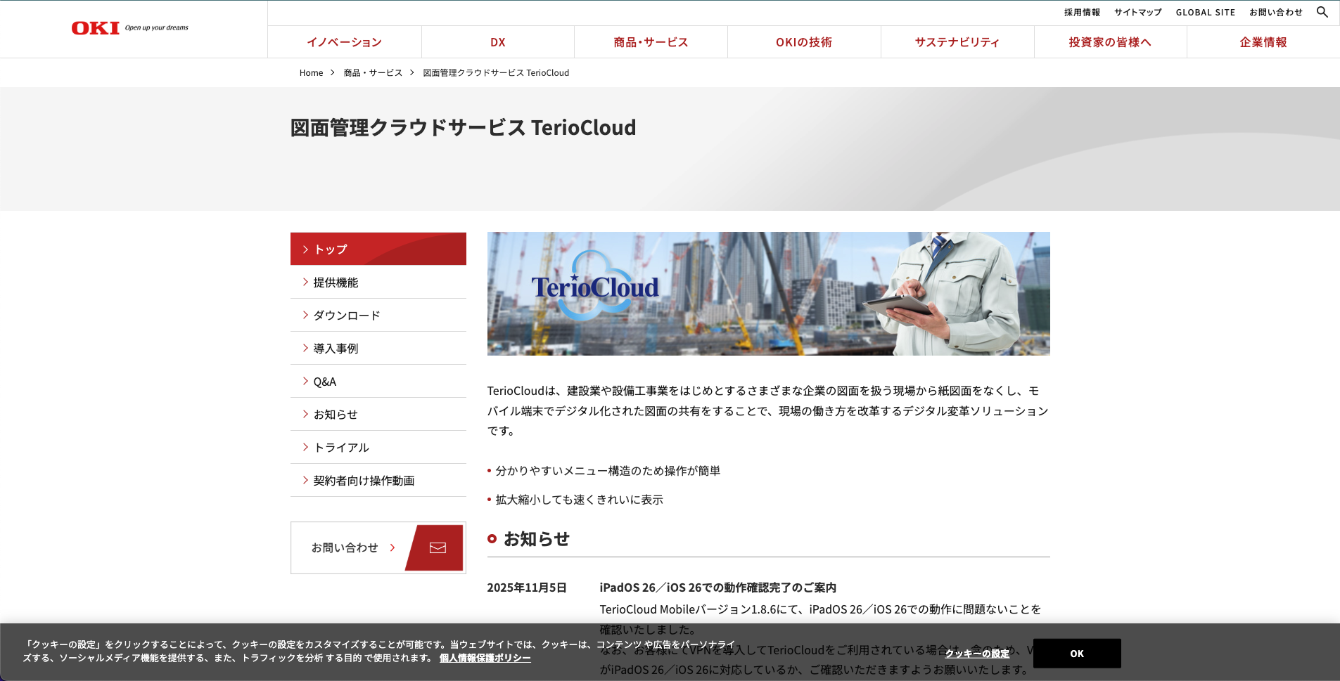 TerioCloudは、建設業・設備工事業などを対象とした図面管理システムです。紙の設計図面から高精度なPDF図面を作成し、モバイル端末でも閲覧・編集ができるようにできます。図面の共有や報告書出力機能もあり、帳票作成業務の時間削減にも効果的です。
