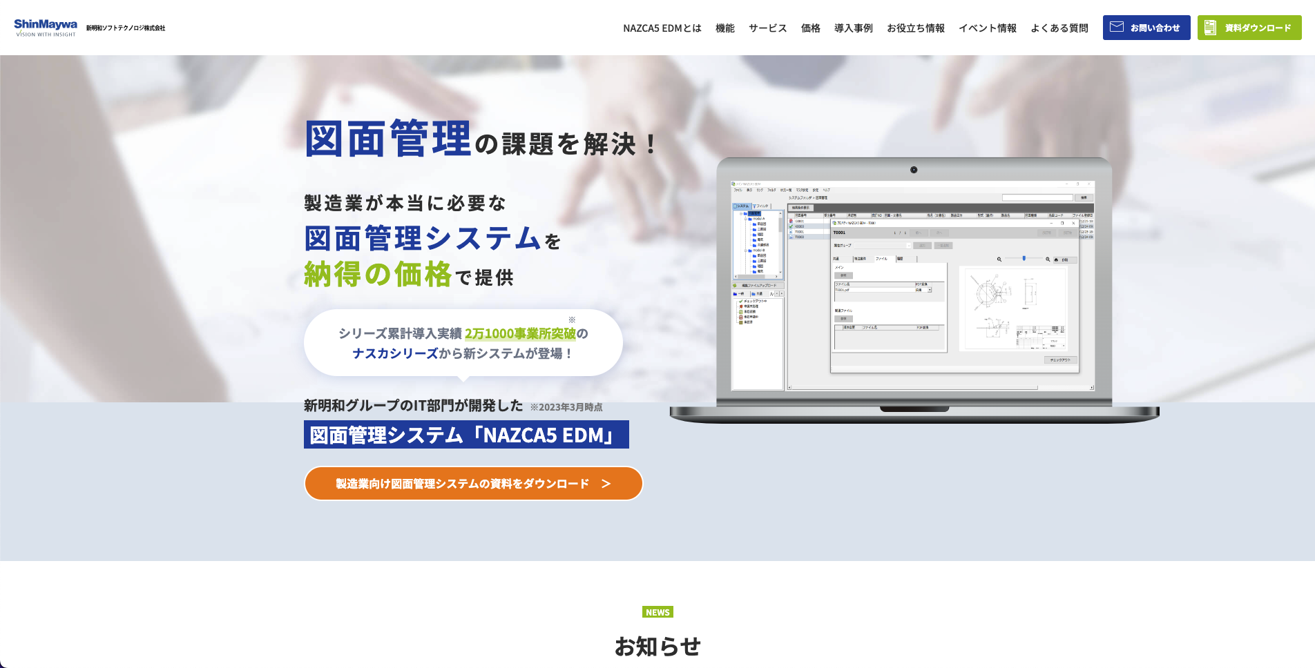 ズメーンは、製造現場の業務を効率化するための図面管理システムです。組立図と部品図のつながりを可視化できる組立図管理機能が特徴で、部品構成や関係性を直感的に把握したい企業に適しています。AIによる類似図面検索や自動入力機能も備えており、高機能な図面管理システムを求める場合にもおすすめです。