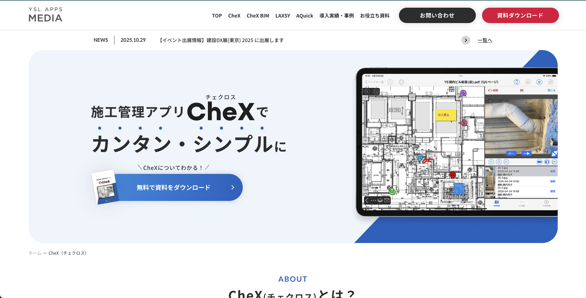 CheXは、図面や写真、関連書類などを一括管理できる施工管理アプリです。PCだけでなくスマホやタブレットにも対応しており、建設現場の生産性向上を支援します。オフライン環境での資料閲覧も可能で、ネット環境の整っていない現場での作業にも活用可能です。