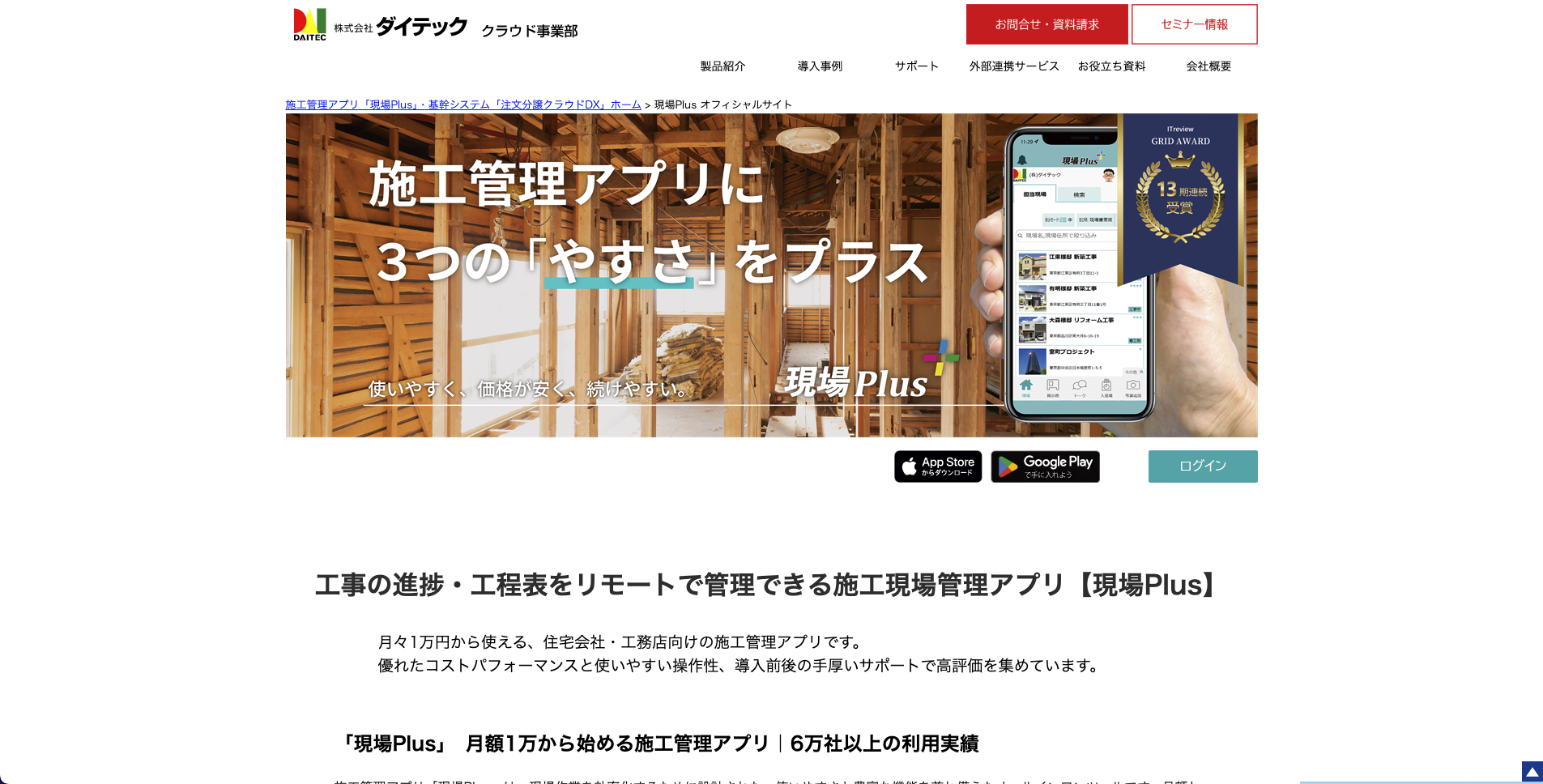 | 主な機能 | 図面/写真/書類の現場共有・進捗