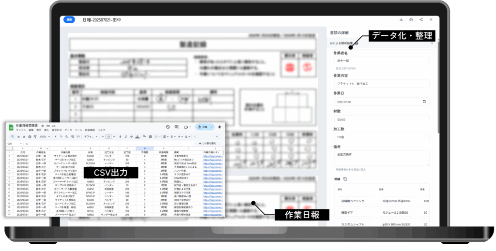 DX Engineとは、OCR技術による書類や図面の高精度なスキャン・データ化と、独自AIによる整理・検索機能を統合した、業務効率化ソリューションです。
