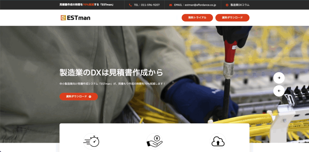 ESTmanは、製造業向けの見積管理・原価管理に特化したシステムです。案件単位で見積書を作成・管理でき、過去見積の検索や再利用が容易になります。原価情報や材料費、加工費を体系的に管理できるため、見積精度の向上と利益管理の強化に貢献します。図面解析AIなどの高度な自動化機能は限定的ですが、見積業務の標準化や属人化解消を目的には適したサービスです。