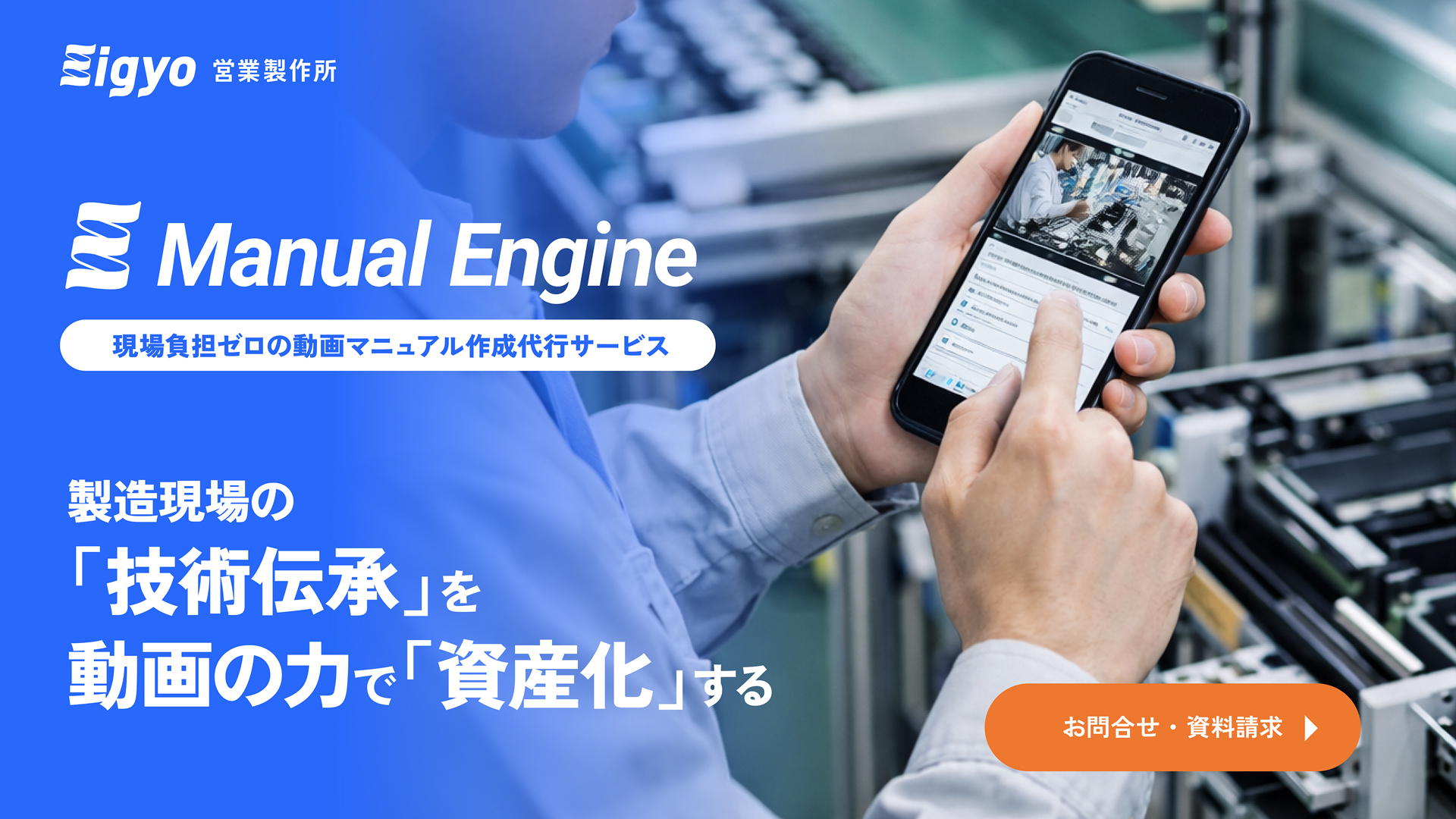 Manual Engineは、製造現場の『技術伝承』を動画の力で『資産化』する、現場負担ゼロの動画マニュアル作成代行サービスです 。