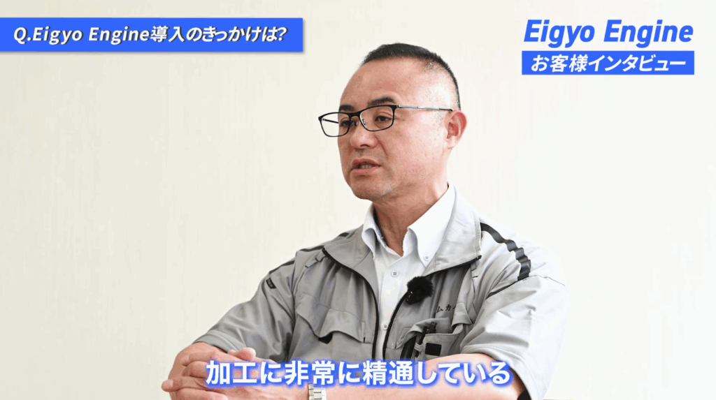 Eigyo Engineの導入にあたり、株式会社ムカイでは単なる営業代行ではなく、自社の技術や強みを正しく理解したうえで営業活動を進められるパートナーであるかどうかを重視しました。営業製作所は製造業に特化した知見を持ち、加工内容や業界特性を踏まえた提案が可能である点が評価されました。