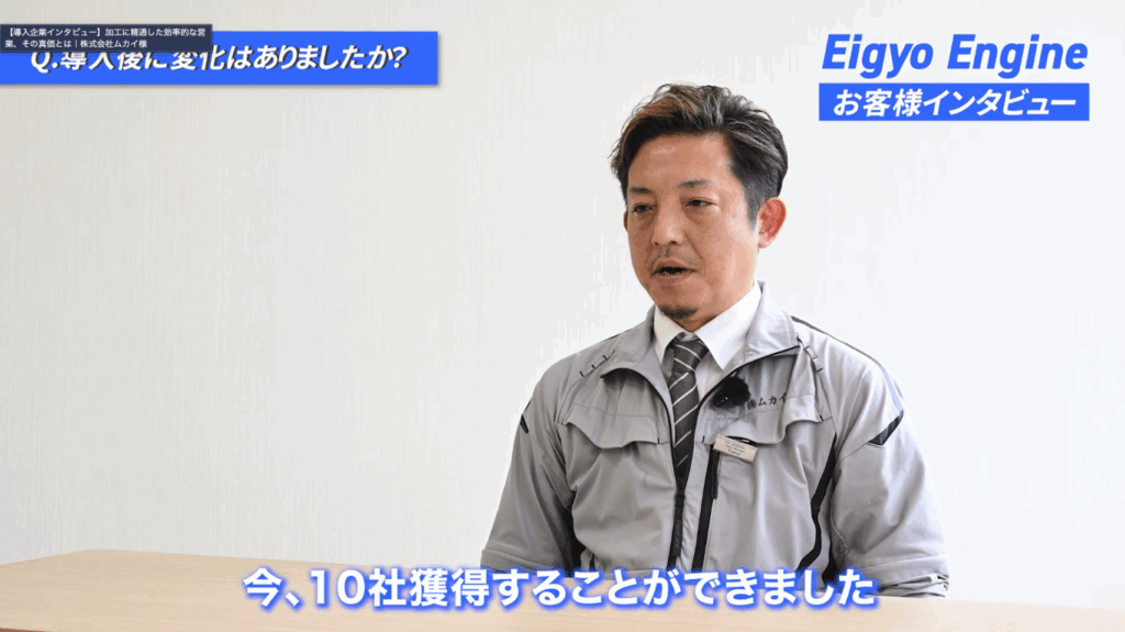 社長を含め2名しか営業がおらず自分たちでは行けなかったところもにも、スムーズに営業ができるようになりました。そのおかげで今、10社獲得することができました。