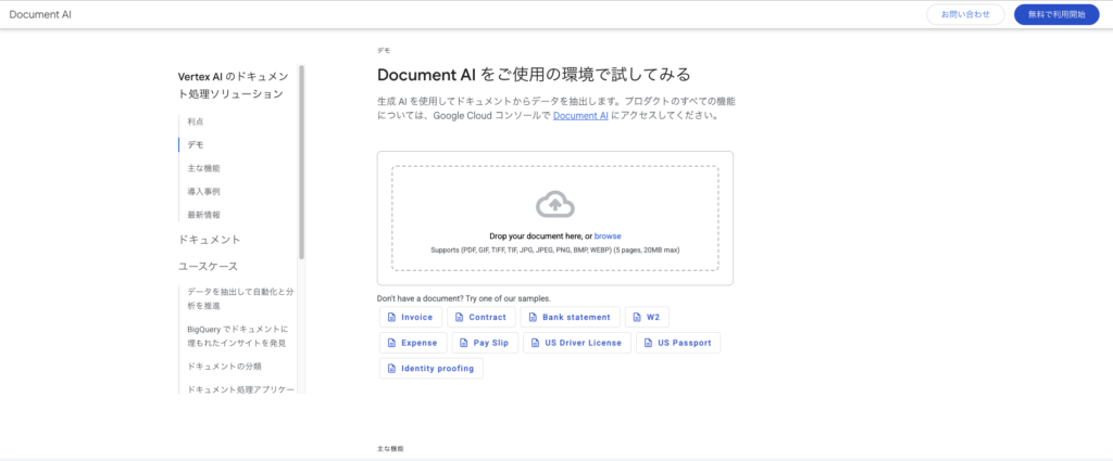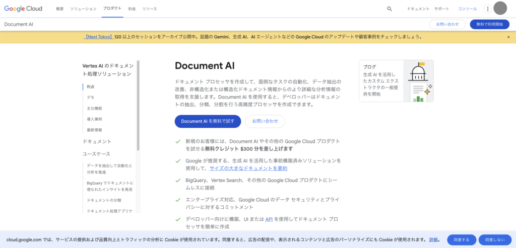 次に、Google CloudのOCR機能であるGoogle Cloud Document AIの使い方を解説します。Document AIの公式サイトにアクセスしましょう。