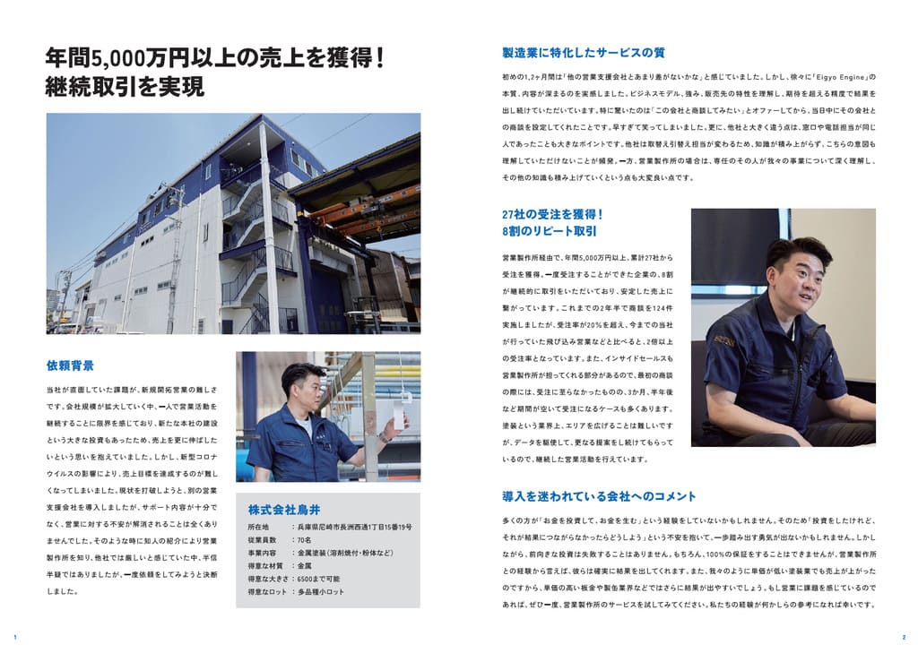 • 年間5,000万円以上の売上を獲得! 継続取引を実現