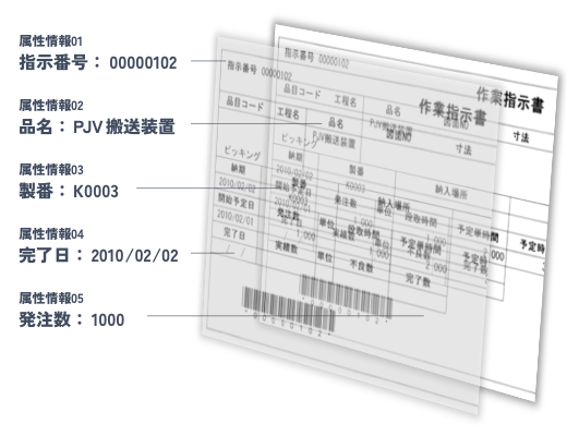 お客様それぞれで、書類の種類・請求書番号・発注日・支払日・図番・取引先名など項目を任意で設定可能です。